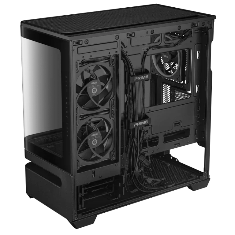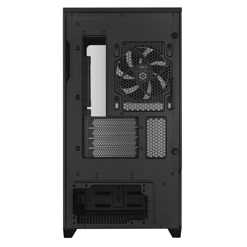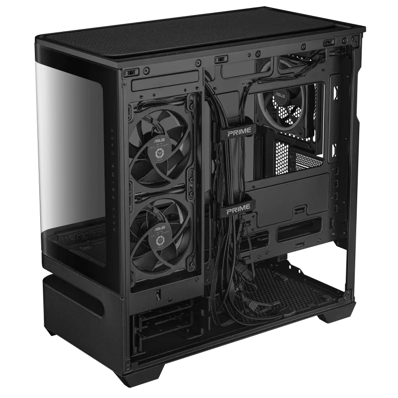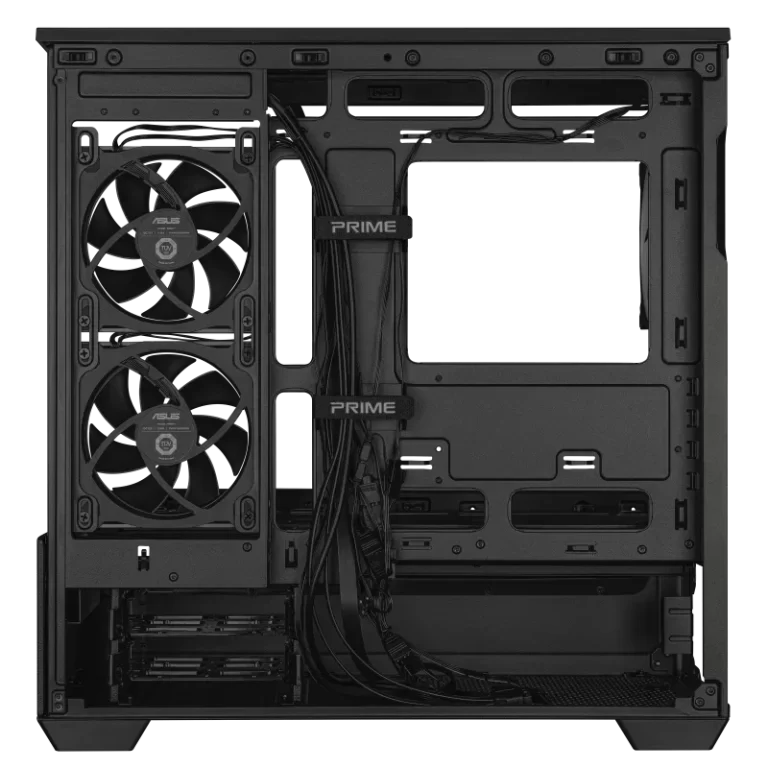 ASUS’s patented lower slot vent design directs fresh airflow precisely toward the graphics card, significantly improving GPU cooling efficiency. This targeted airflow solution helps maintain stable temperatures for high-end GPUs, even during