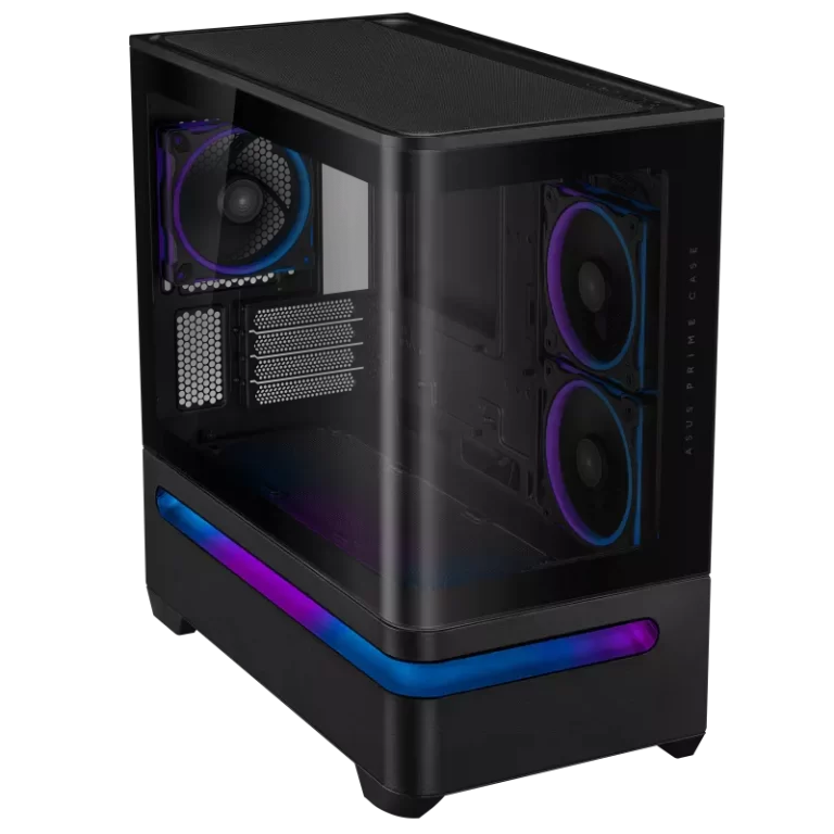 Buy the ASUS Prime AP202 ARGB Micro-ATX Case for a perfect blend of panoramic design, patented airflow innovation, integrated ARGB lighting, and support for high-end graphics cards in a compact chassis.