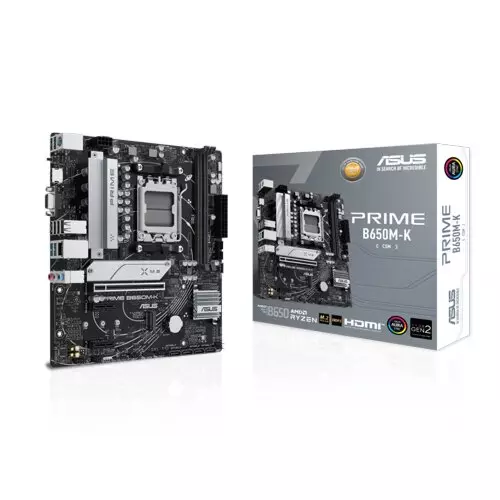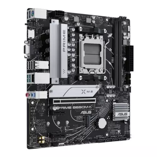 The ASUS PRIME B650M-K is built for creators, gamers, and professionals who want reliable performance, next-generation speed, and effortless control in a compact Micro-ATX design. Engineered to unleash the full potential of AMD Ryzen™ 7000 Series desktop processors, this motherboard offers a perfect balance of power, cooling, and connectivity — all tailored for the demands of modern AI computing and high-performance workflows.