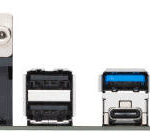1 x DisplayPort 1 x HDMI® port 1 x USB 3.2 Gen 1 port (1 x Type-A) 1 x USB 3.2 Gen 2×2 port (1 x USB Type-C®) 1 x Vertical M.2 slot (Key E) 1 x VGA port 2 x USB 2.0 ports (2 x Type-A) 2 x USB 3.2 Gen 2 ports (2 x Type-A) 3 x Audio jacks |