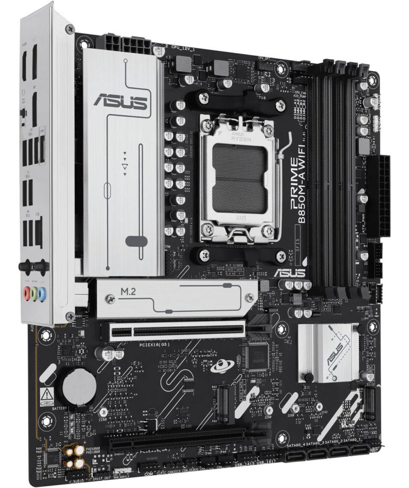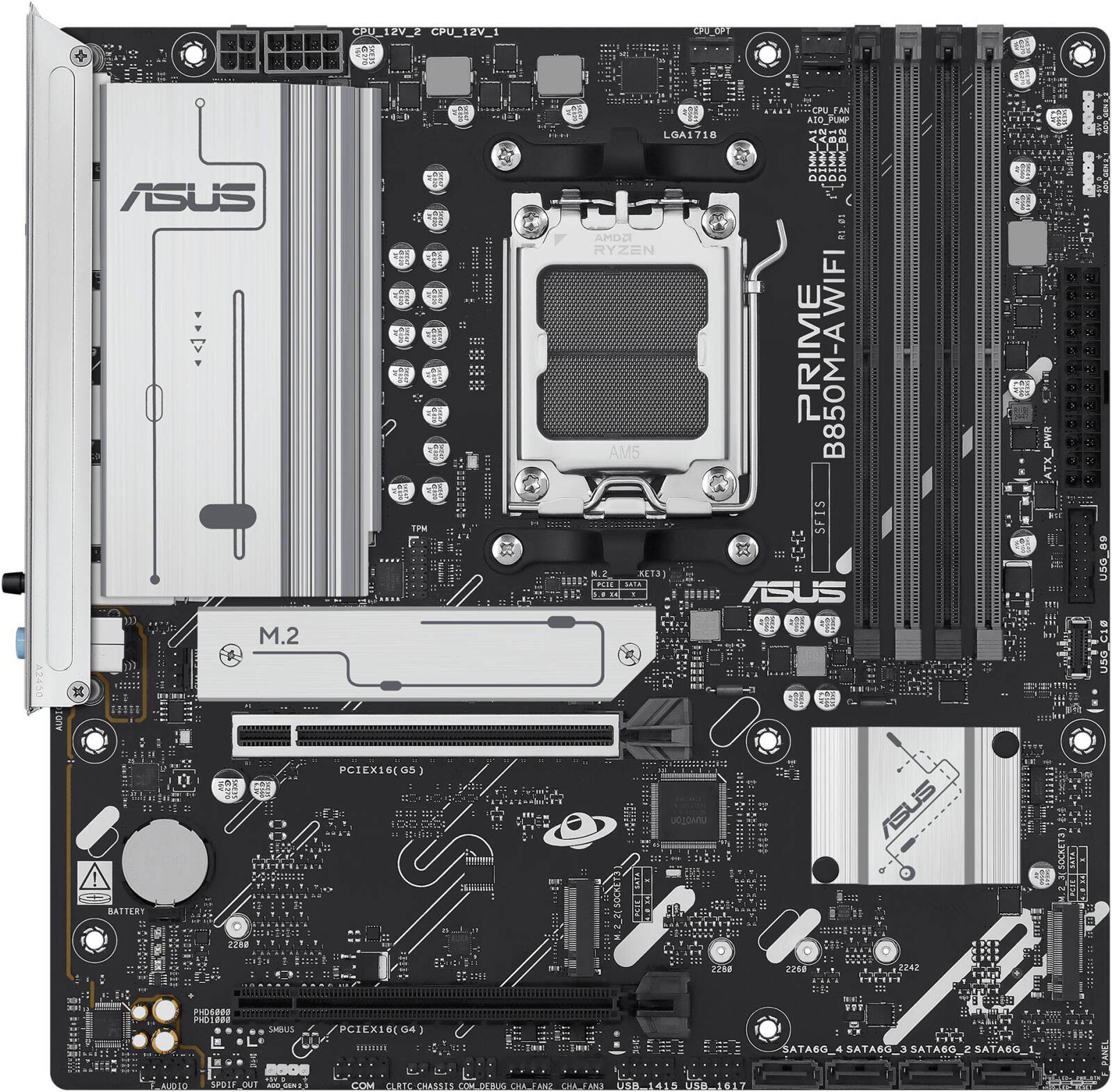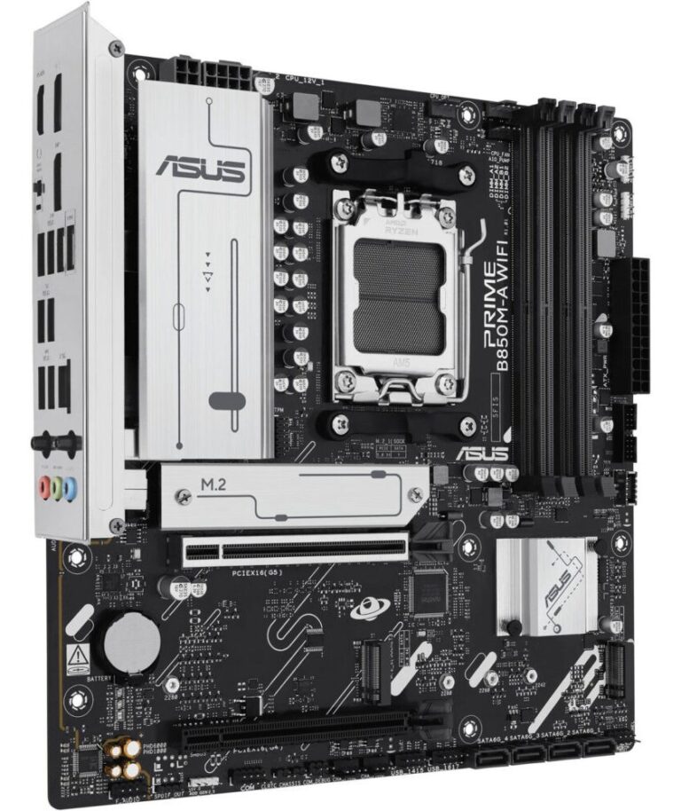 The ASUS Prime B850M-A WiFi is a feature-rich AM5 motherboard built to unlock the full performance potential of AMD Ryzen™ 9000, 8000, and 7000 series processors. Engineered with a robust power architecture, WiFi 6E connectivity, advanced DDR5 capability, and PCIe 5.0 support, it delivers a modern and reliable foundation for gaming, content creation, productivity, and AI-assisted workloads.