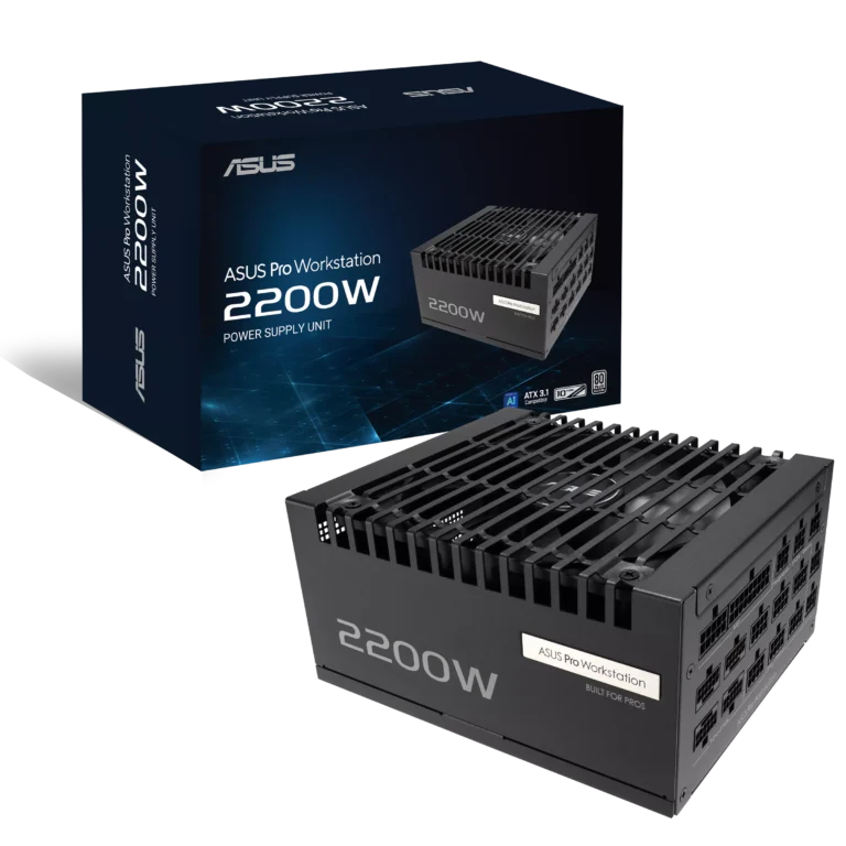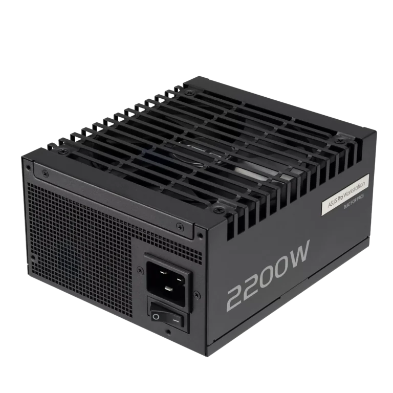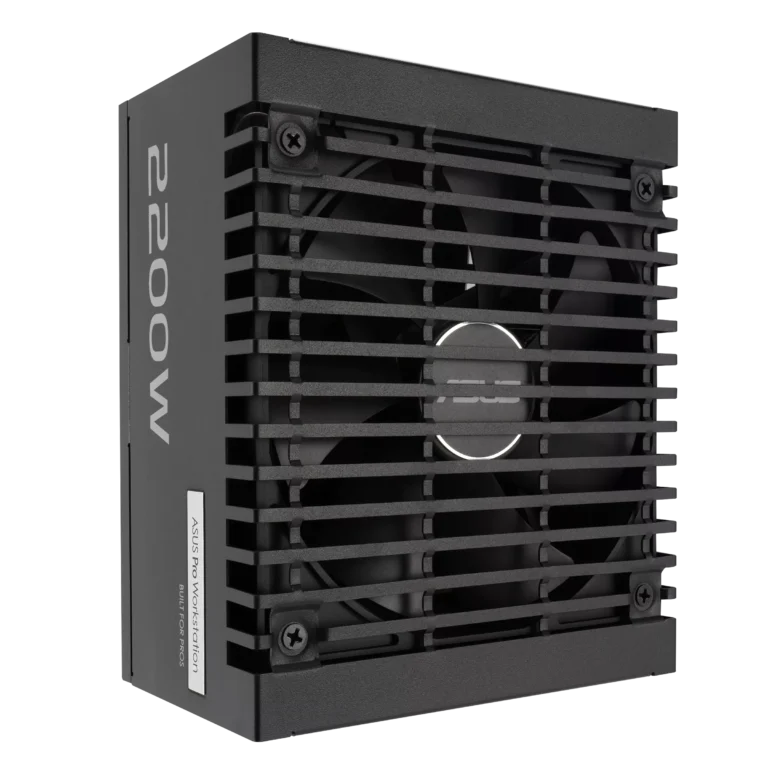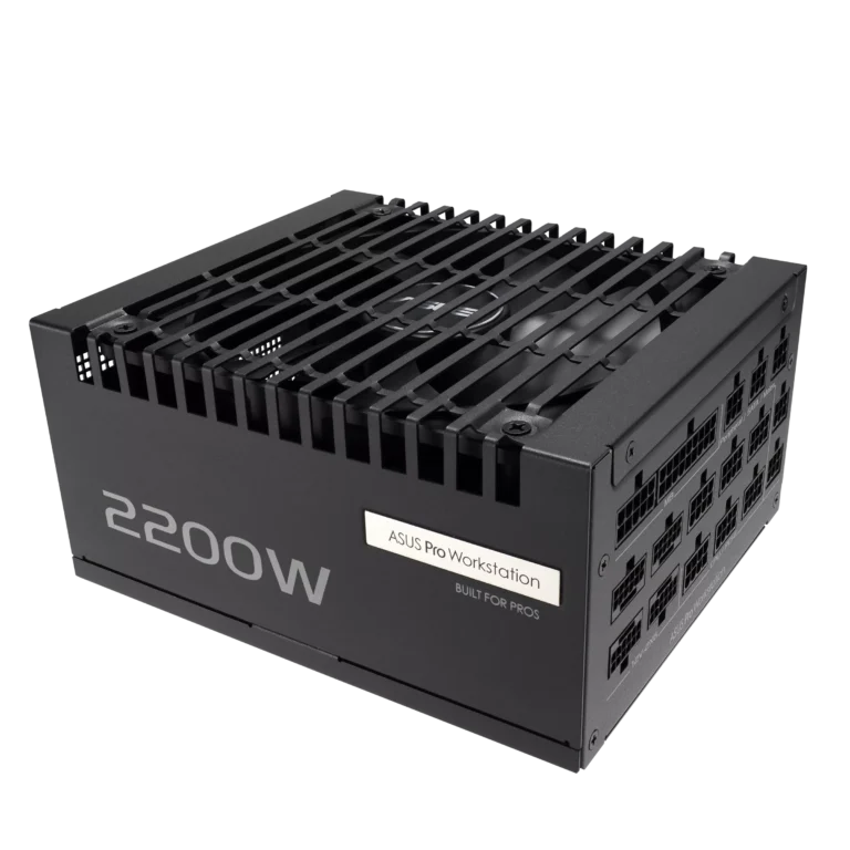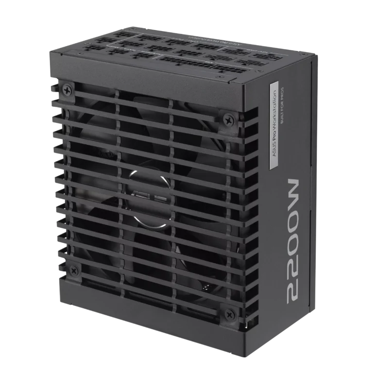 ASUS Pro WS 2200W Platinum PSU delivers exceptional voltage stability and advanced power delivery for professionals, supporting up to four graphics cards to meet the demanding AI workloads.