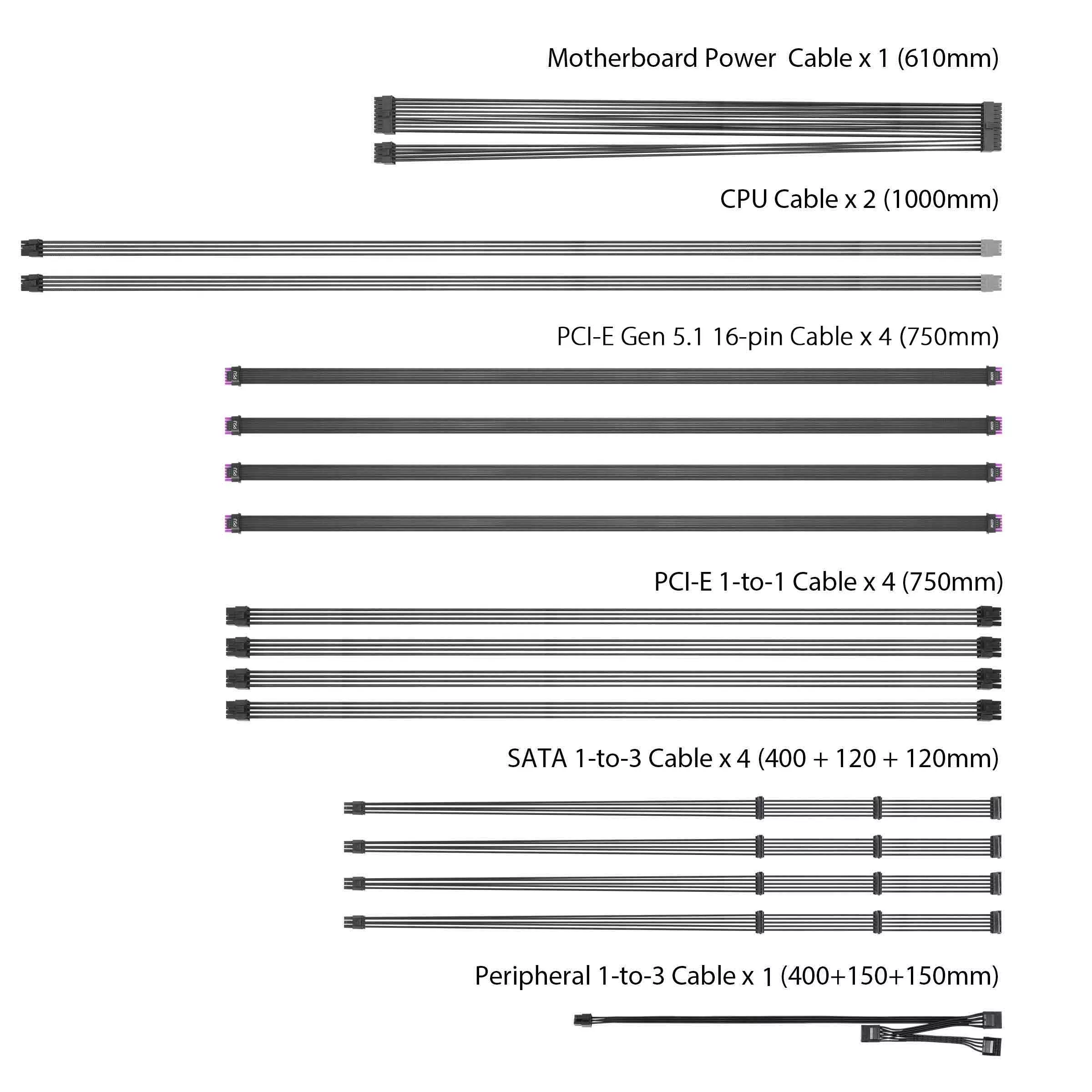 PCI-E Gen 5.1 16-pin Cable x 4 (750mm)