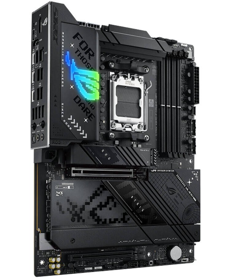 The ASUS ROG STRIX X870-F Gaming WiFi is a high-end AM5 gaming motherboard engineered to unlock the full performance of AMD Ryzen 9000, 8000, and 7000 processors. Powered by the advanced AMD X870 chipset, this ATX board delivers exceptional overclocking potential, AI-enhanced optimization, next-gen connectivity, and high-speed DDR5 performance for elite gaming and professional workflows.