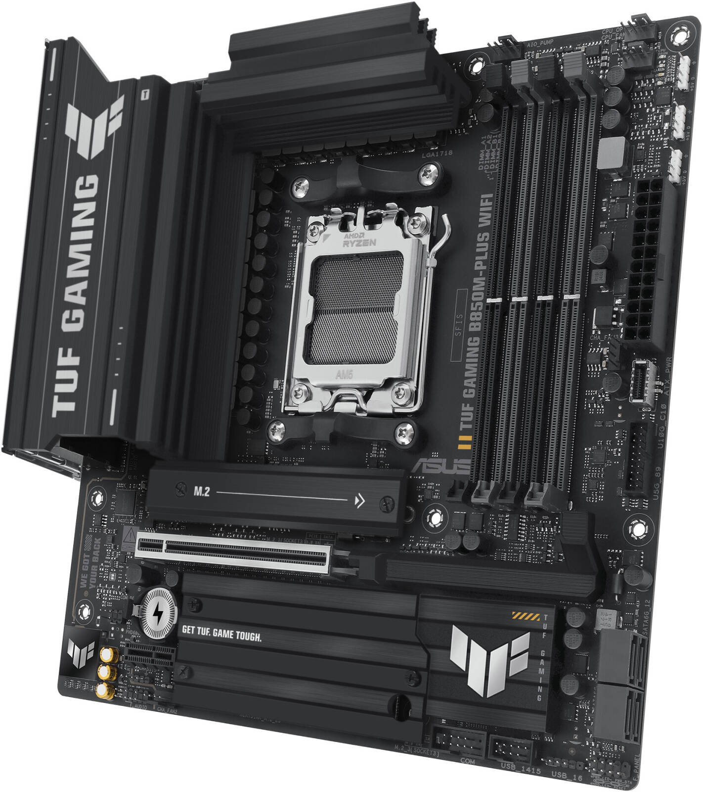 The ASUS TUF GAMING B850M-PLUS WIFI combines the latest AMD Ryzen™ processor support with enhanced durability, advanced cooling, and all the features that gamers and creators demand. Built with military-grade components and an upgraded power delivery system, this motherboard is engineered to provide consistent, rock-solid performance even during marathon gaming sessions. Every TUF board undergoes rigorous endurance testing to ensure reliability under extreme conditions — making it a trusted foundation for high-performance PCs.