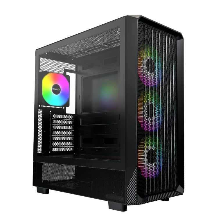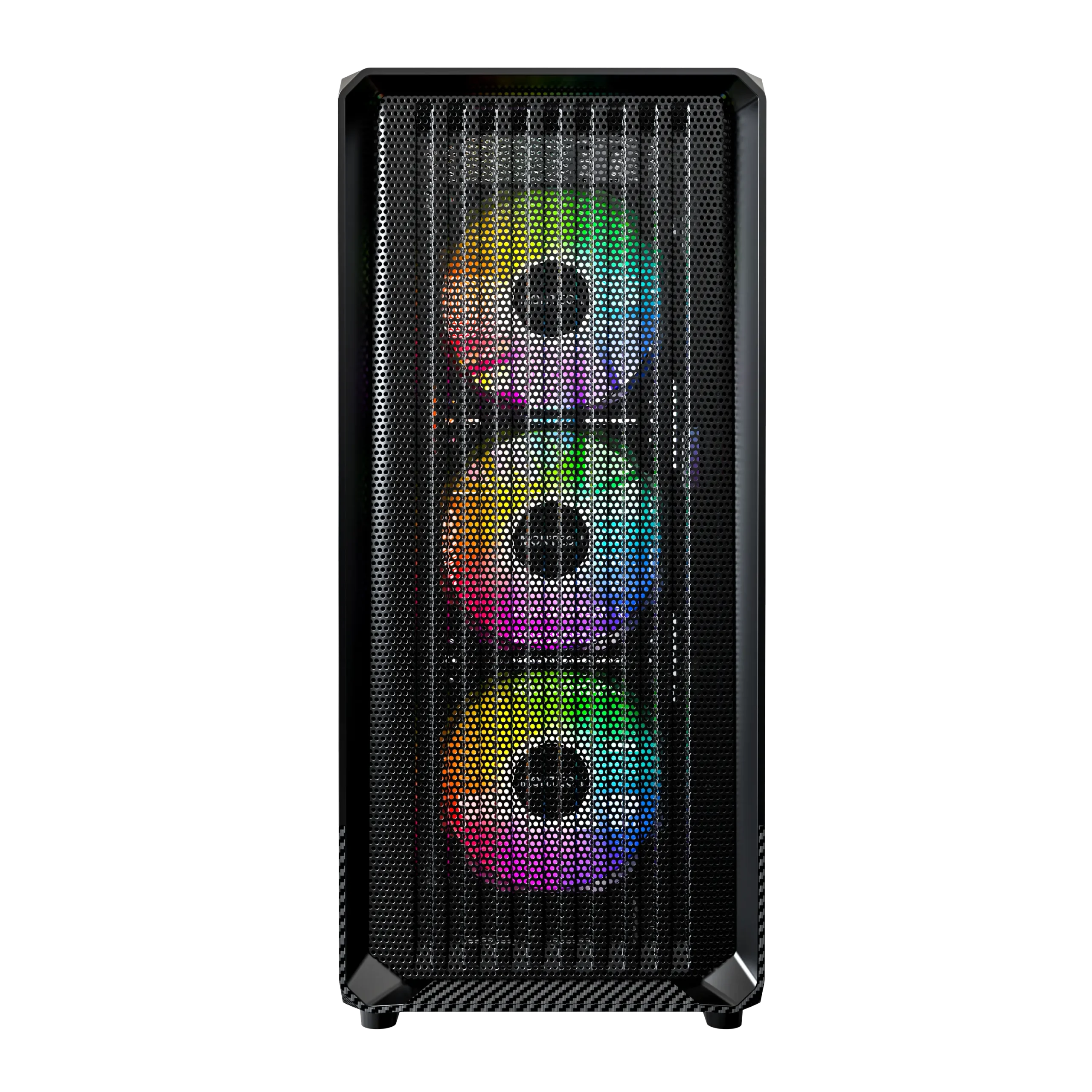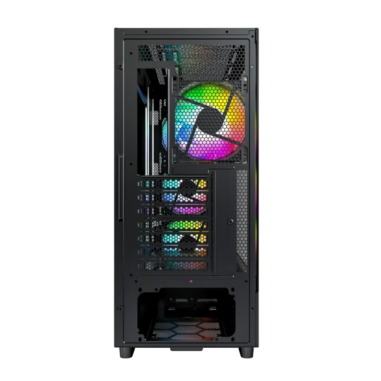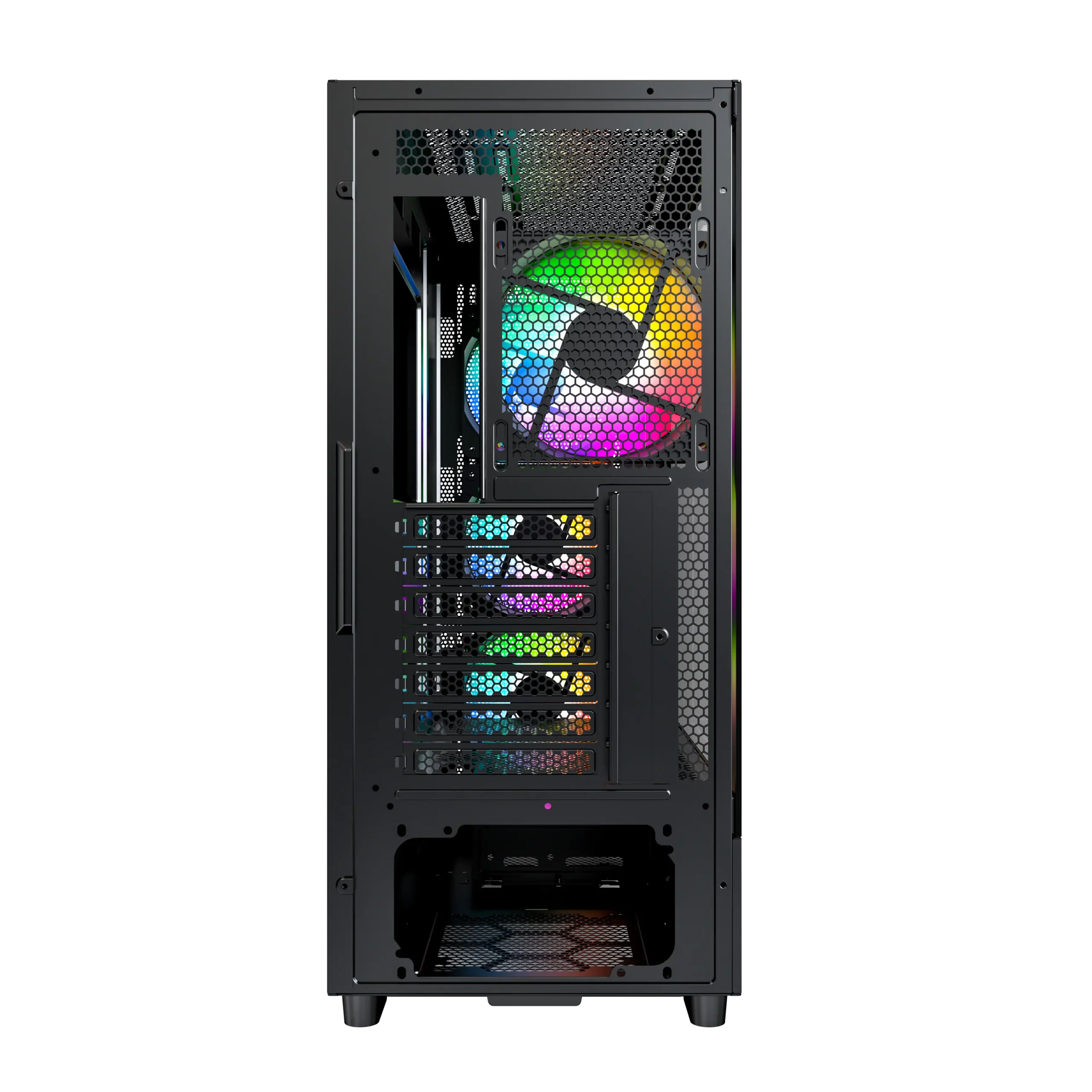 A high-airflow mesh front panel with up to 33% porosity maximizes cool air intake, keeping internal temperatures stable during gaming and heavy workloads. The case comes pre-installed with four ARGB fans, delivering strong airflow and vibrant lighting straight out of the box.