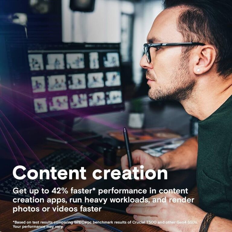 The Crucial T500 1TB PCIe Gen4 NVMe SSD delivers high-end performance designed for gamers, creators, and professionals who need fast load times, smooth application performance, and efficient handling of large files. With powerful sequential speeds and reliable storage technology, the T500 elevates any modern PC or laptop upgrade.