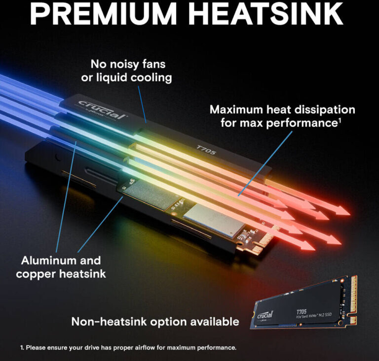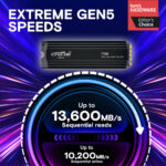 Upgrade to the Crucial T705 1TB SSD and experience the pinnacle of NVMe performance with extreme speed, advanced cooling, and reliable endurance.