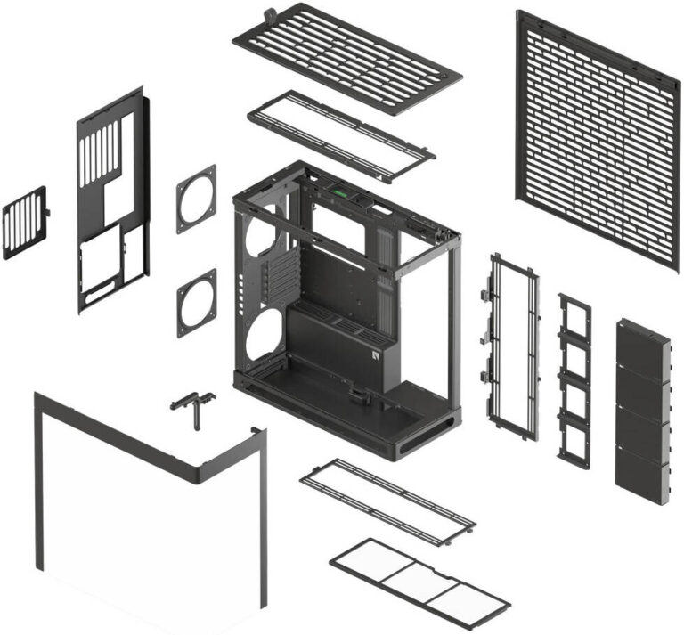 Optimized thermal performance design with custom panel ventilation, ideal for 140mm fans (11 fan positions in total), and up to 420mm radiators on the top, side, and bottom.