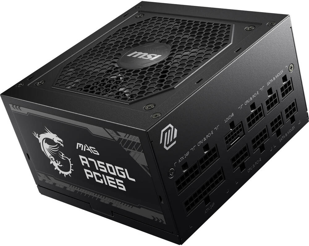 MSI MAG A750GL PCIE5 750W Modular Power Supply ? ATX 3.0, 80 Plus Gold, 120mm Fan, 4? PCIe 6+2-pin, 8? SATA, Black | 306-7ZP8B18-CE0