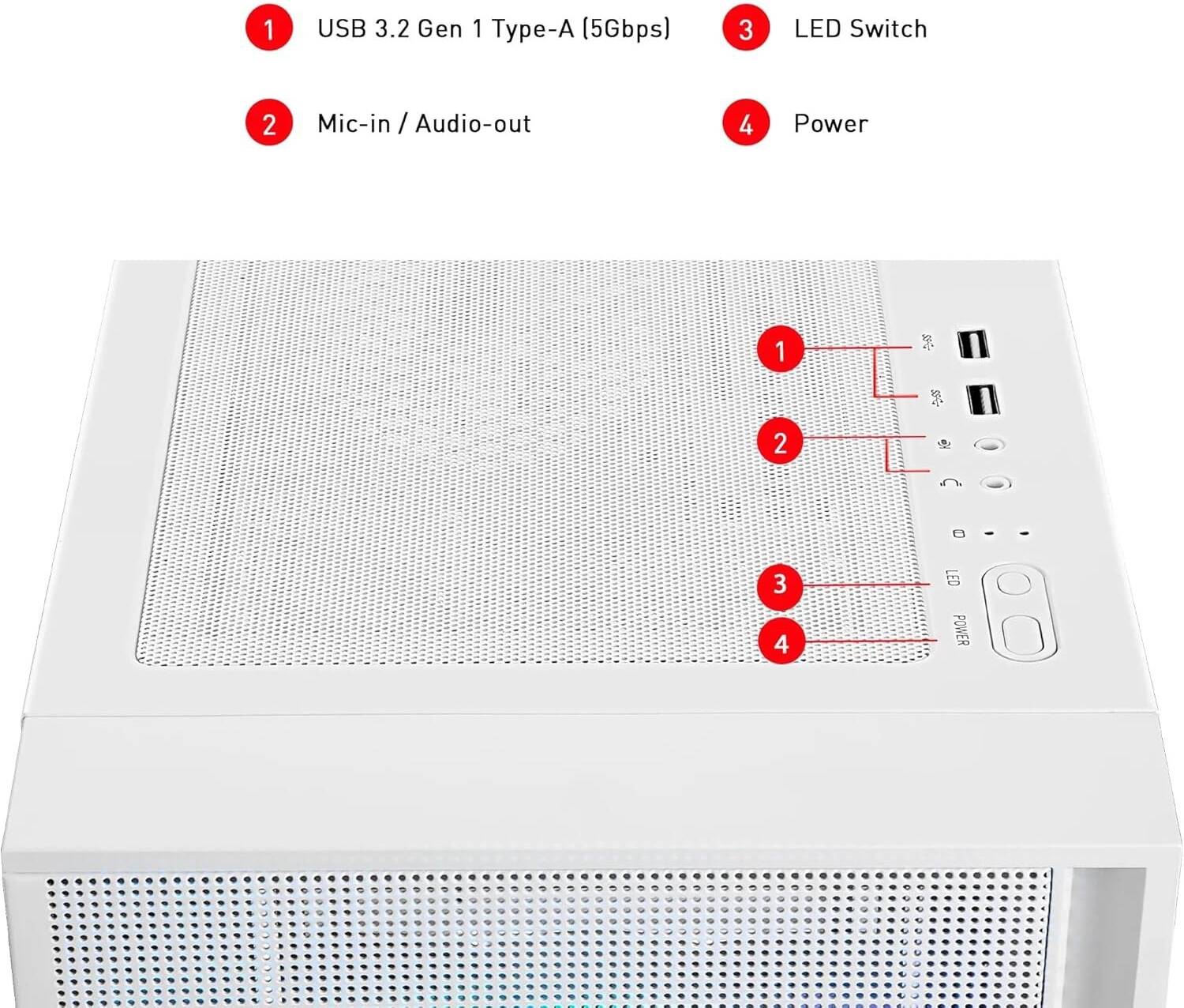 MSI MAG Forge 320R Airflow ATX Mid Tower Case, White ? Includes 4 Pre-Installed Fans, Supports Up to 360mm Radiator, 3.5″/2.5″ Drive Bays, Tempered Glass Side Panel, Mesh Front | 306-7G23W21-HH9