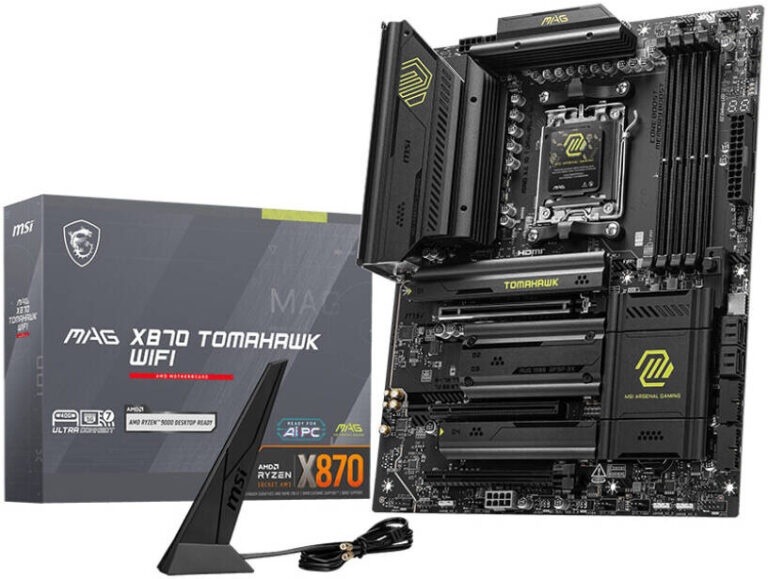 Built for gamers who demand stability, durability, and next-generation performance, the MSI MAG X870 TOMAHAWK WIFI delivers a rock-solid foundation for high-end PC builds. Powered by the AMD X870 chipset and designed for the latest AM5 Ryzen™ 9000 series processors, this ATX motherboard combines military-inspired toughness with cutting-edge features to elevate every gaming battle.