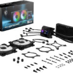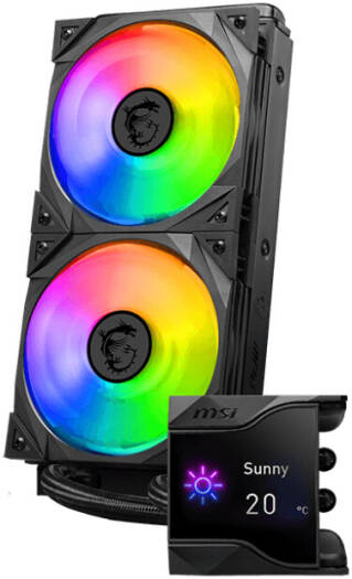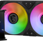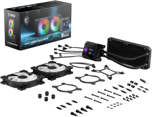 MSI MPG CORELIQUID D240 AIO Liquid Cooler With 2.4” IPS Display, 240mm Radiator, 2 x MSI Torx ARGB & PWM Controlled Fan, 2800 RPM, 77.4 CFM, Two Ball Bearing, Reinforced Tubing, Black | 936-6A1611-005