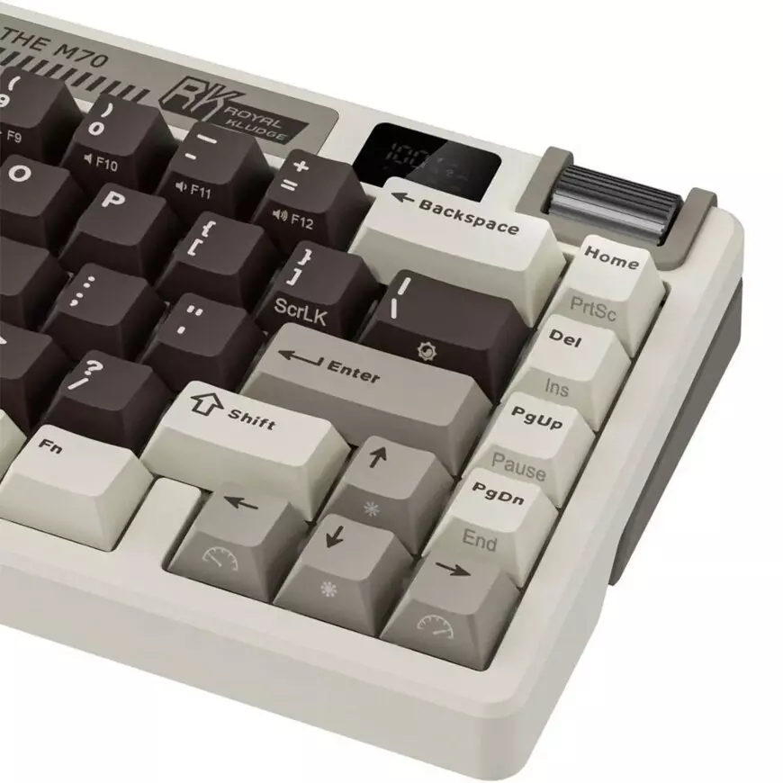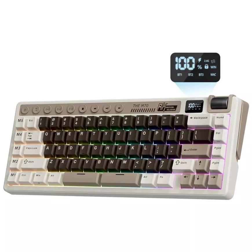 Buy the RK Royal Kludge M70 RGB Wireless Mechanical Keyboard to experience smooth gasket-mounted typing, powerful RGB lighting, hot-swappable freedom, and long-lasting wireless performance—all in a sleek Mocha Grey design.