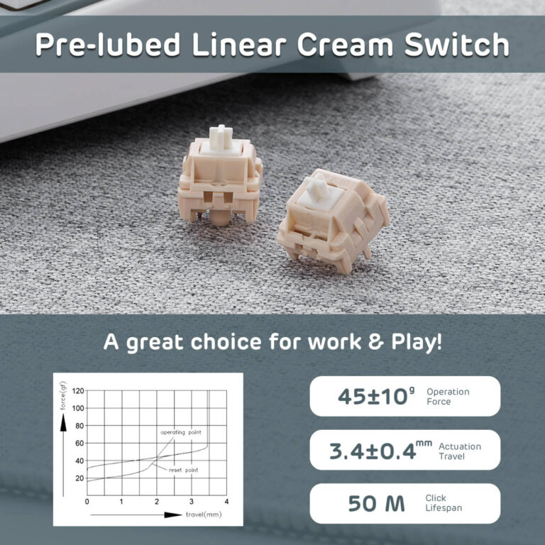 Typing on the RK M87 feels premium thanks to its gasket-mount structure and five layers of sound-absorbing material. The result is a soft, quiet, and cushioned typing feel that reduces fatigue during long sessions. The Cherry-profile PBT keycaps enhance durability and texture, ensuring long-term comfort and resistance to shine. With pre-lubed RK cream linear switches, every keystroke is smooth, fast, and satisfying — and the hot-swappable PCB allows you to experiment with 3-pin or 5-pin switches for a fully personalized setup.