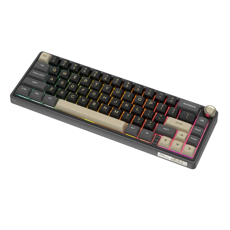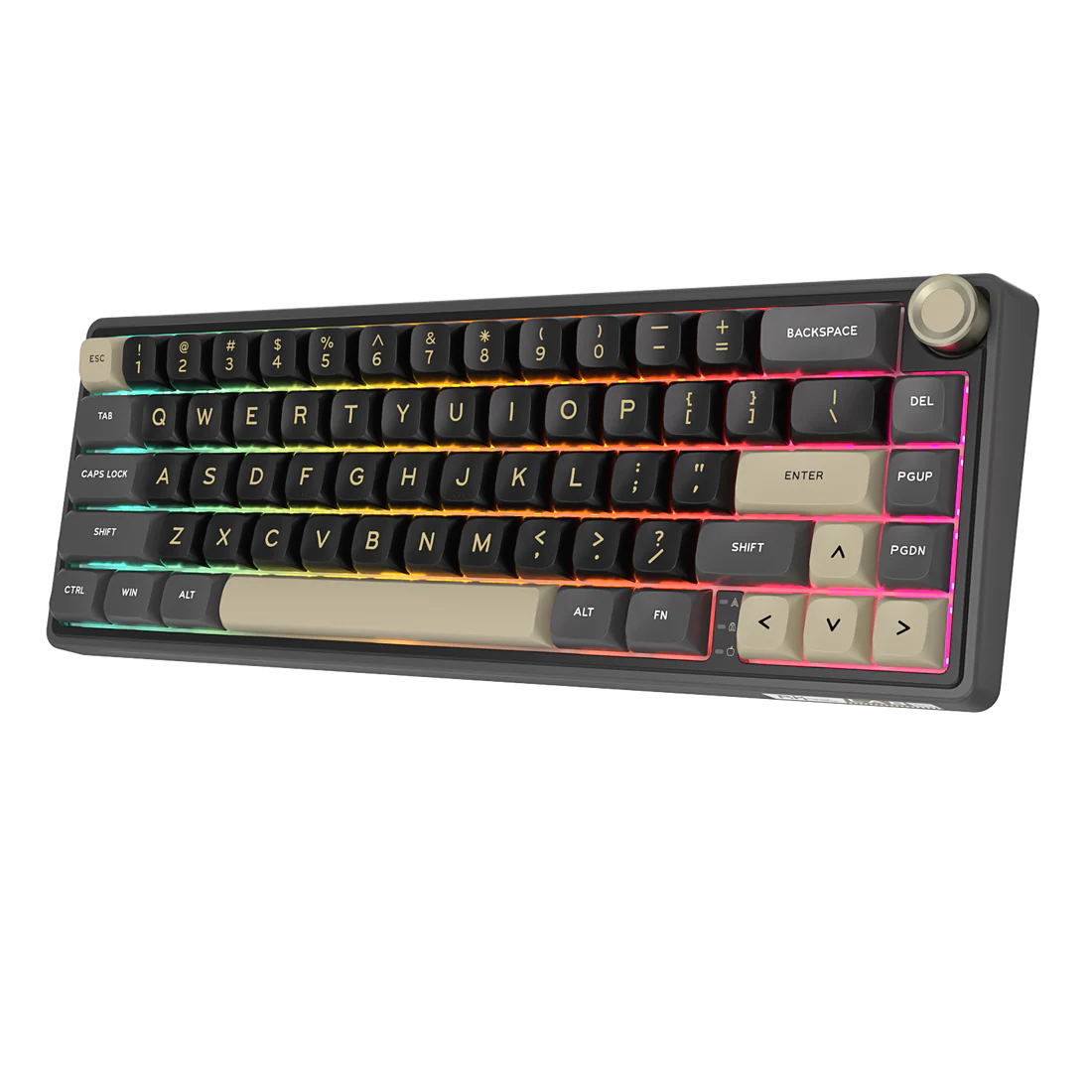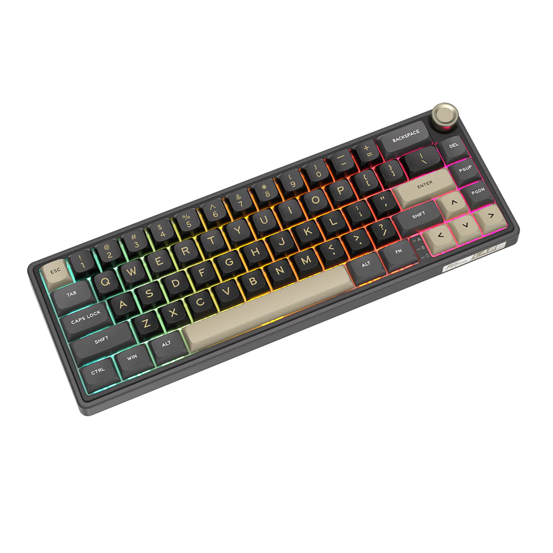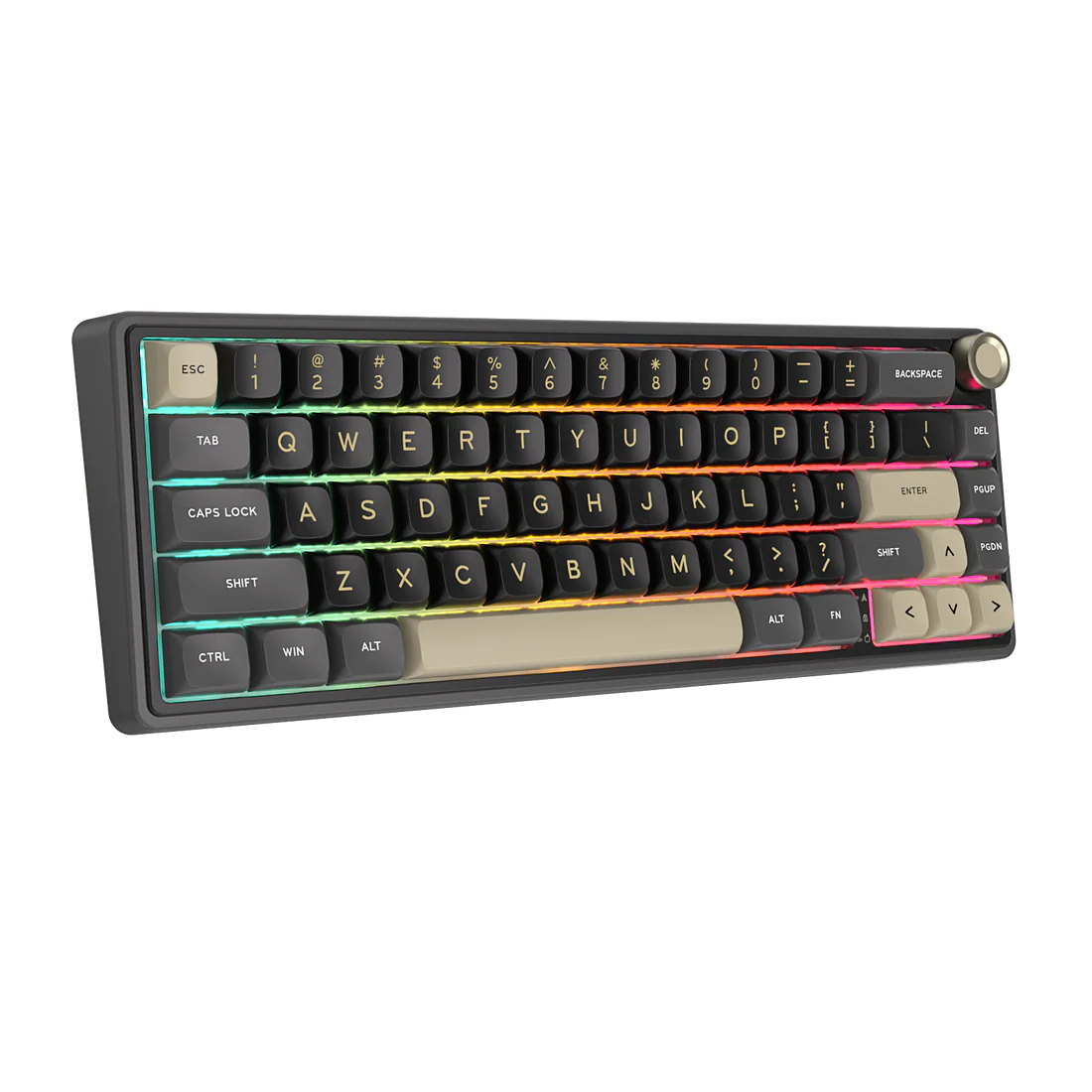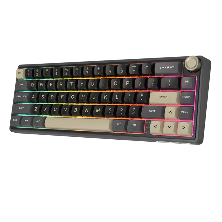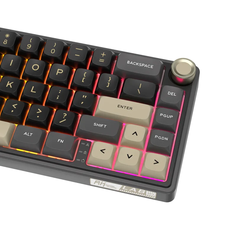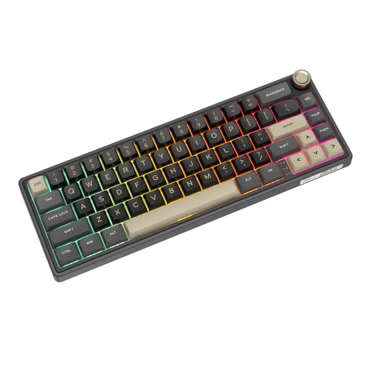 The RK ROYAL KLUDGE R65 Phantom stands out with full QMK/VIA programmability, giving you complete control over key mapping, macros, and lighting. With 20+ backlight modes, you can tailor the keyboard’s glow to match your setup and workflow. Its durable MDA profile PBT keycaps offer a comfortable grip and long-lasting texture, ensuring they stay crisp and fade-resistant even after heavy use. The CNC-machined aluminum volume knob adds a premium touch, offering smooth and precise control with every twist.