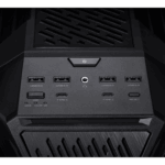 Dual front-panel USB Type-C ports deliver high-speed connectivity, with 60W fast charging support for laptops and mobile devices. The reinforced aluminum frame and sturdy carrying handles add durability and portability worthy of the ROG name.