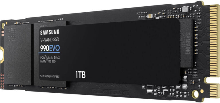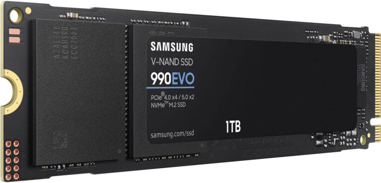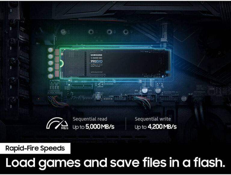 The Samsung 990 EVO 1TB SSD brings high-efficiency performance for gaming, business workloads, and everyday computing. Designed with Samsung’s advanced V-NAND flash and NVMe 2.0 interface, it delivers fast load times, responsive multitasking, and smooth workflow performance—ideal for upgrading modern systems.