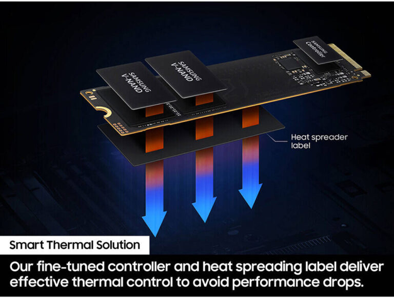 With up to 5000MB/s read and 4200MB/s write speeds, the 990 EVO boosts system responsiveness for gaming, creative applications, and heavy multitasking. Its PCIe 4.0 x4 and PCIe 5.0 x2 compatibility ensures wide support with improved efficiency and thermal control.