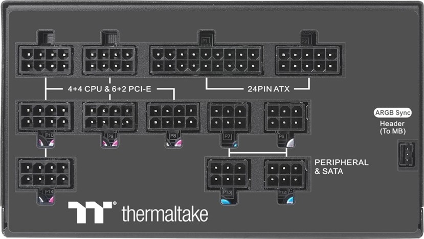 The Toughpower PF1 houses a Smart Zero Riing Duo 14 Fan which starts to operate when the power supply working load goes over 40%, the noise is always minimized. A user-friendly switch is located on the back panel for those who prefer for the fan to spin constantly. Show off the vivid illumination through the unique ARGB side panel to add incredible aesthetics to your build, and enjoy incredible lighting from the RGB fan that features dual rings with eighteen addressable LEDs, remarkable light coverage and incredible brightness to illuminate your build with 16.8 million colours.