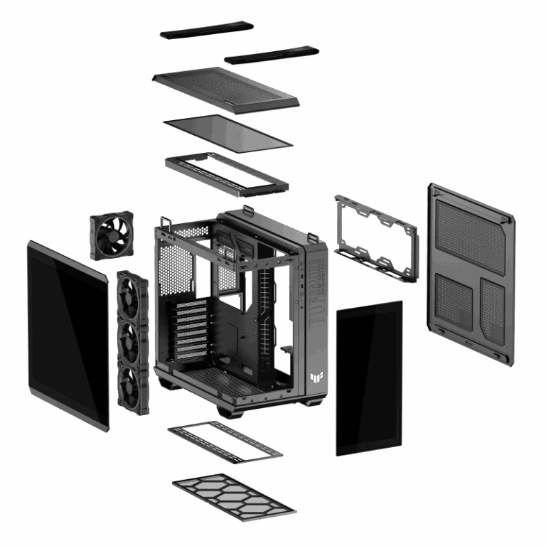 The TUF Gaming GT502 Horizon ARGB is a premium mid-tower chassis designed for gamers and PC builders who demand both exceptional performance and striking aesthetics. Embodying the TUF series’ core principles of durability and strength, this case features a robust metal frame and tempered glass panels.