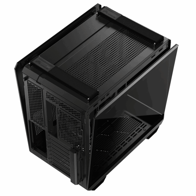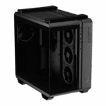 Its unique “Horizon” layout rotates the internal structure, positioning the motherboard I/O and expansion slots on the top. This innovative design not only creates a stunning visual showcase but also offers practical benefits for liquid cooling setups. The case comes equipped with three pre-installed 140mm ARGB fans at the front, providing excellent airflow out of the box and vibrant lighting that can be synchronized with your other Aura Sync-compatible components.