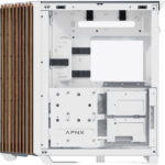 Wood front accent panel (walnut or ash style) adds a warm, high-end feel to the build.