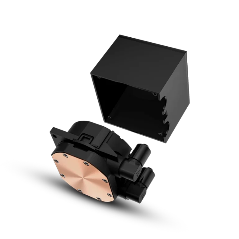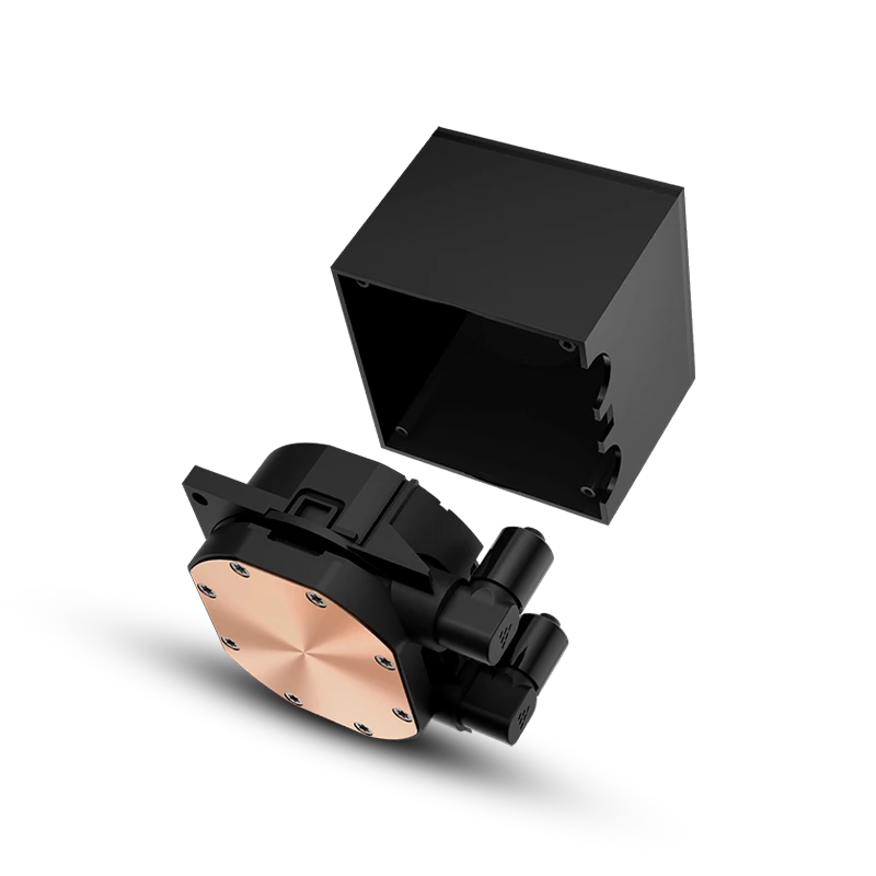 The OC PLUS V1.0 pump uses a ceramic shaft and ceramic sleeve design for long-lasting durability, improved stability, and low noise levels. Its optimized micro-channel cold plate provides ultra-precision coolant flow for maximum heat dissipation.