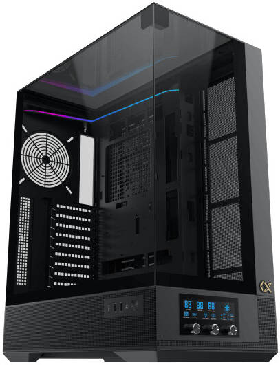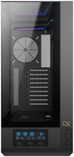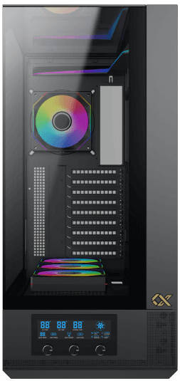 Integrated LCD display panel for smart fan control and real-time system monitoring.